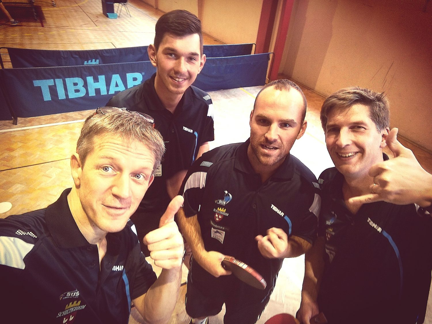 Tout commence à l’équilibre dans cette rencontre, on sent que ça risque d’être serré..à 3-3 .juste avant le double ludo et… ich bin ( pour une fois !)… creusons le trou 5-3, sauf que…malheureusement, les 2 doubles nous seront défavorables…pfff. quel dommage, car là était le salut !, à 5-5, c’est plus pareil, sachant que Yannick ( 1v) créé la surprise en ..perdant sur Tom (..) Ludo toujours indomptable (3v) arrache à la belle le match qu’il fallait !, Papy(1v) se fait exploser le bulbe par Kralev, et Super Chris ( 2v ! ) ,après la belle victoire sur Christophe R. , nous donne le point du match nul sur Adrien- très bon match pour CB aujourd’hui !! …
