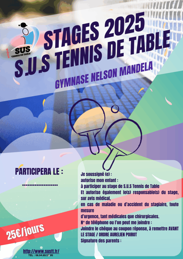 Le club du SUSTT organise des stages à chaque vacances scolaires, y compris pendant les grandes vacances d’été. Que vous soyez débutant ou joueur élite, ces stages sont ouverts à tous les âges et niveaux !