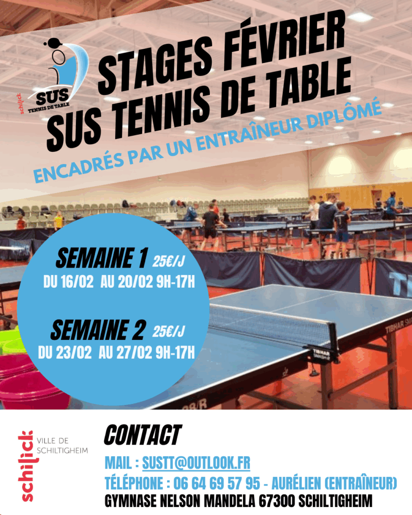 Le club du SUSTT organise des stages à chaque vacances scolaires, y compris pendant les grandes vacances d’été. Que vous soyez débutant ou joueur élite, ces stages sont ouverts à tous les âges et niveaux !