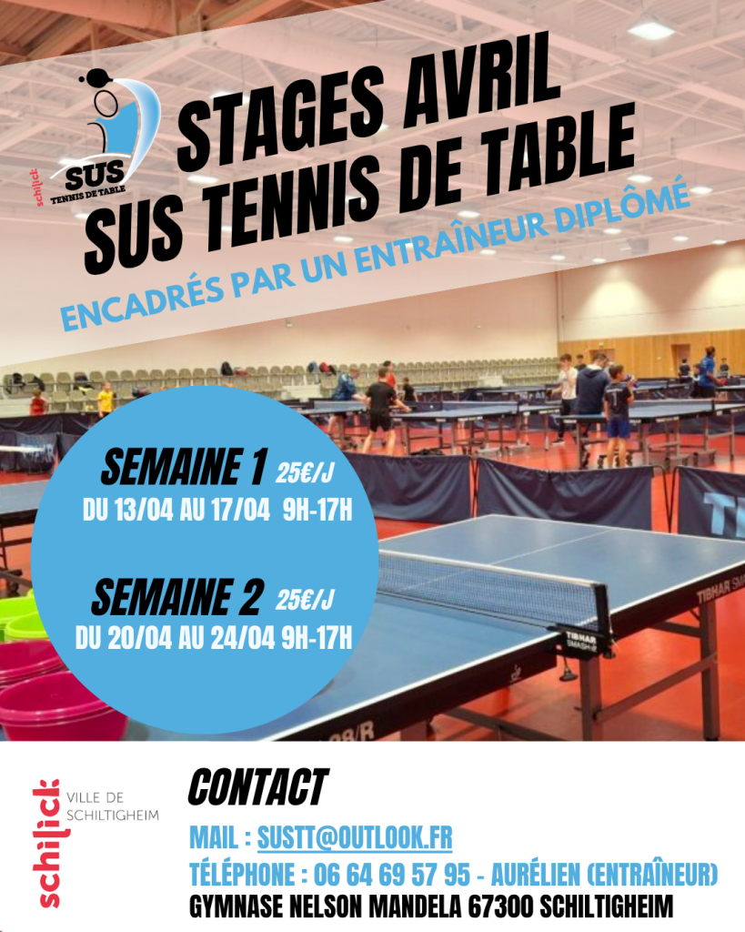 Le club du SUSTT organise des stages à chaque vacances scolaires, y compris pendant les grandes vacances d’été. Que vous soyez débutant ou joueur élite, ces stages sont ouverts à tous les âges et niveaux !